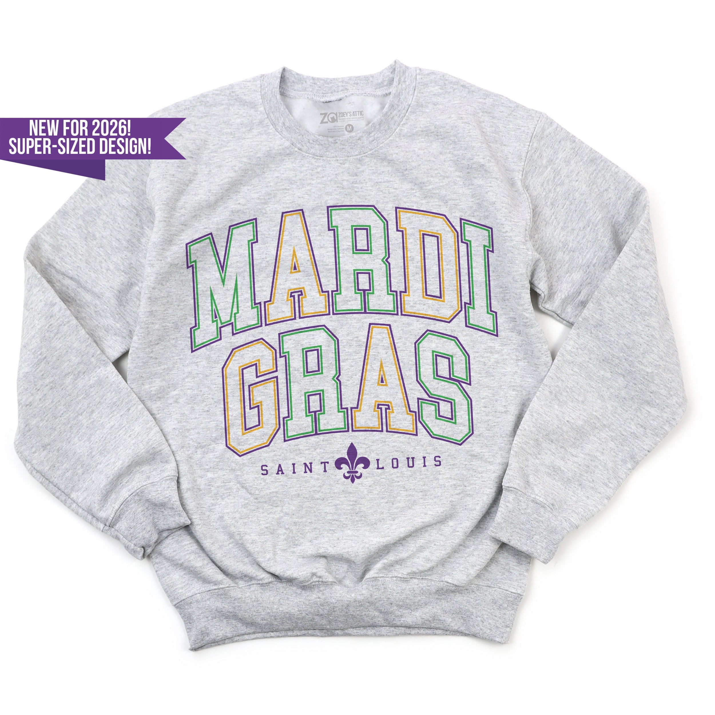 Mardi Gras Saint Louis Oversized Front Graphic Tee – Heather Gray or Purple Custom Exclusive Design | New for 2026
