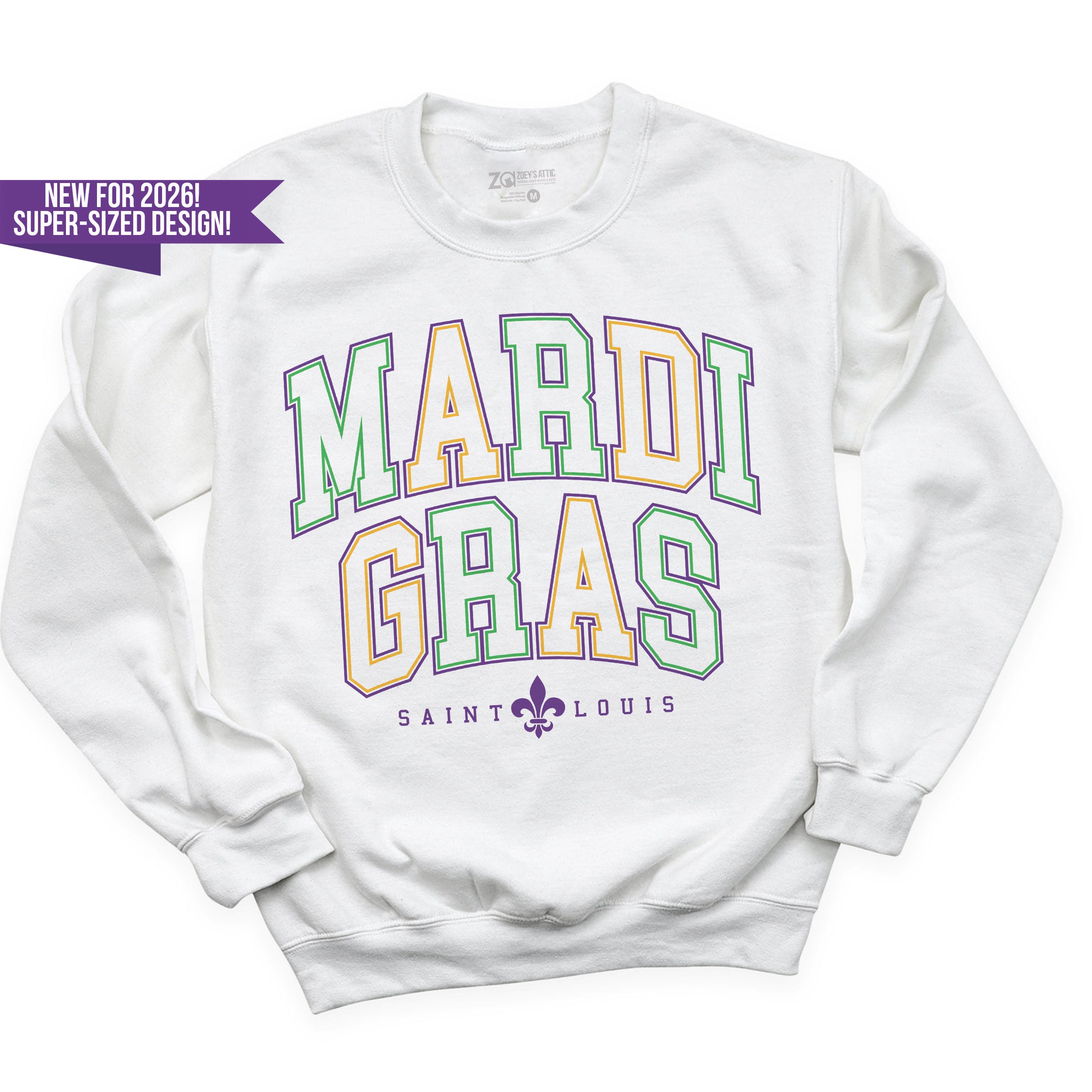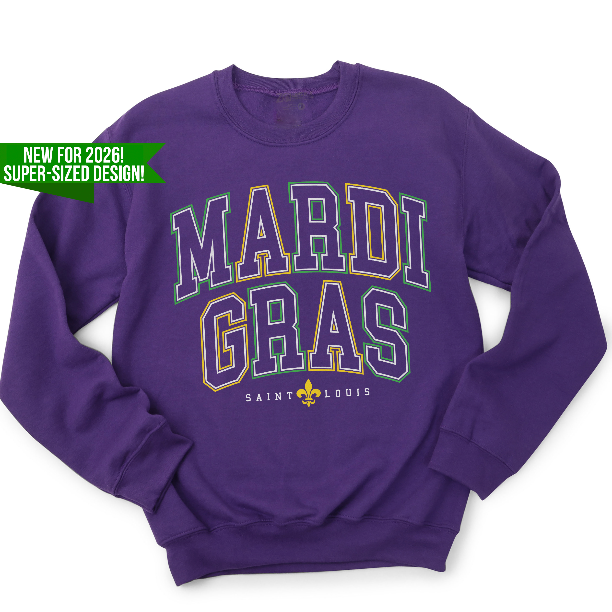 Bring the beads, the bold, and the Big Easy energy — St. Louis style. This custom, exclusive 2026 design is only available through us and features a massive oversized front graphic that spans 13–16 inches wide (depending on shirt size) for a true statement look you won’t find anywhere else.