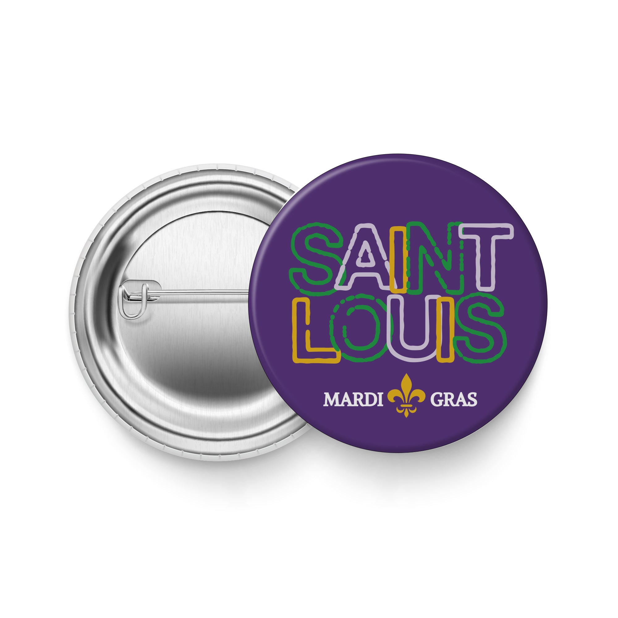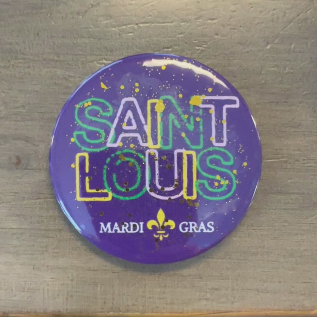 Bring the sparkle to Soulard and beyond with our Mardi Gras Buttons & Pins—the perfect little pop of personality for jackets, hats, bags, and bead-covered fits. Each pin measures 2.8” across and features a sturdy metal backing that stays put whether you’re catching throws, dancing in the street, or repping Mardi Gras all season long.