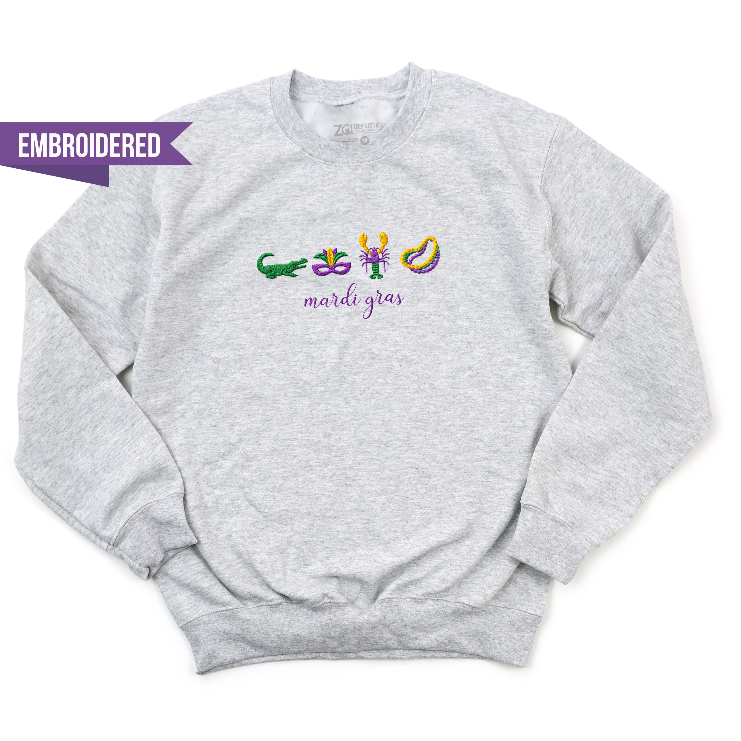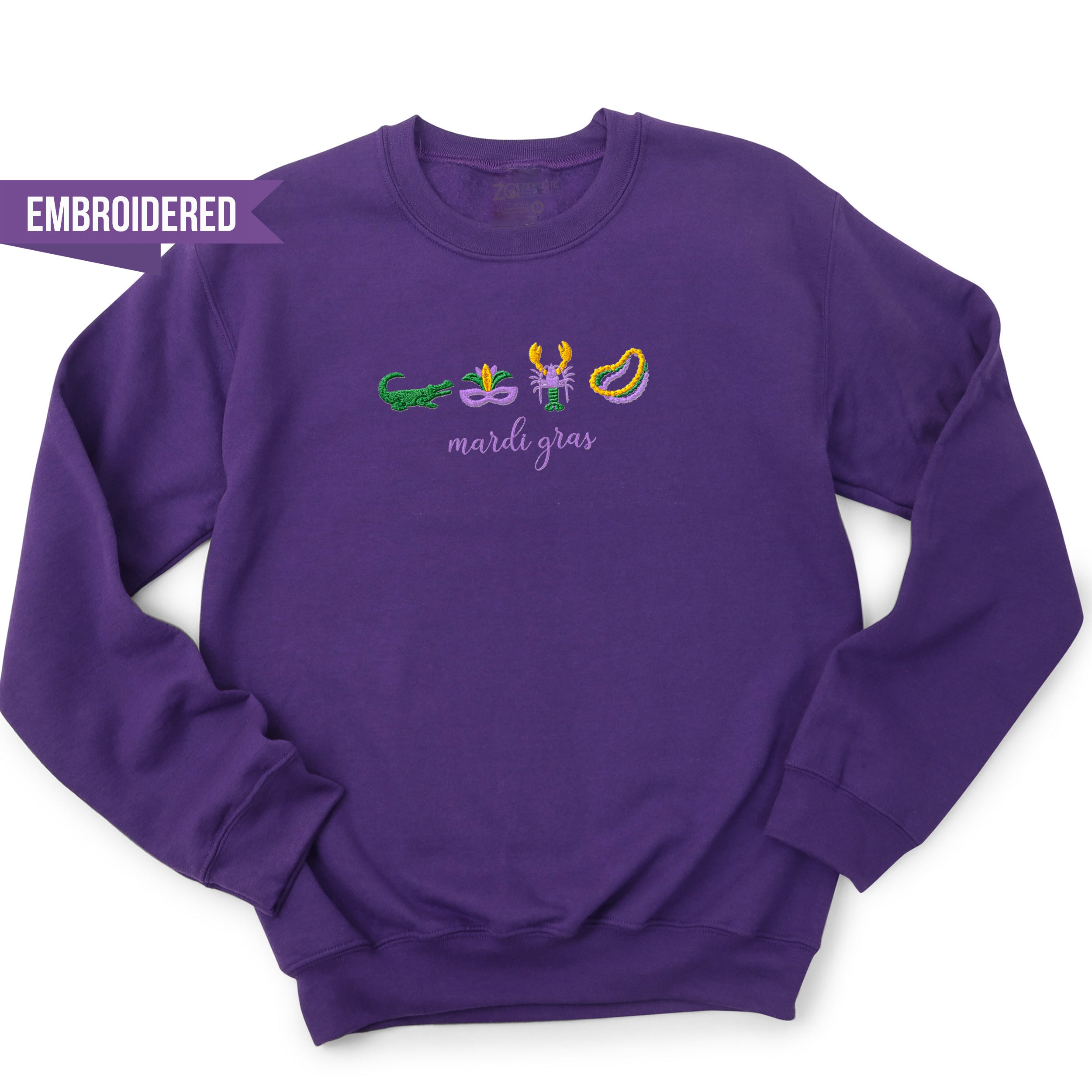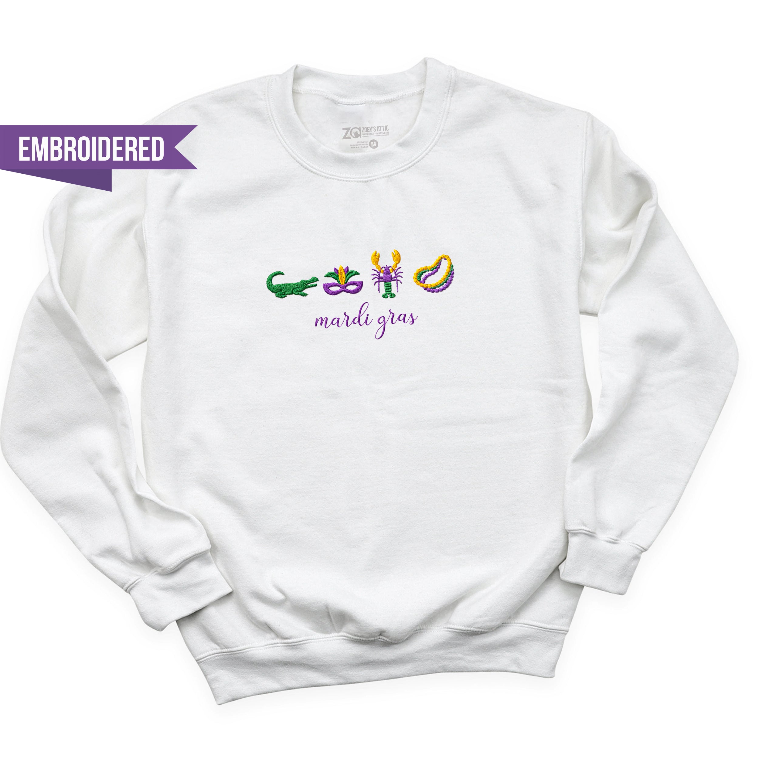 Simple Embroidered Mardi Gras Crewneck Sweatshirt