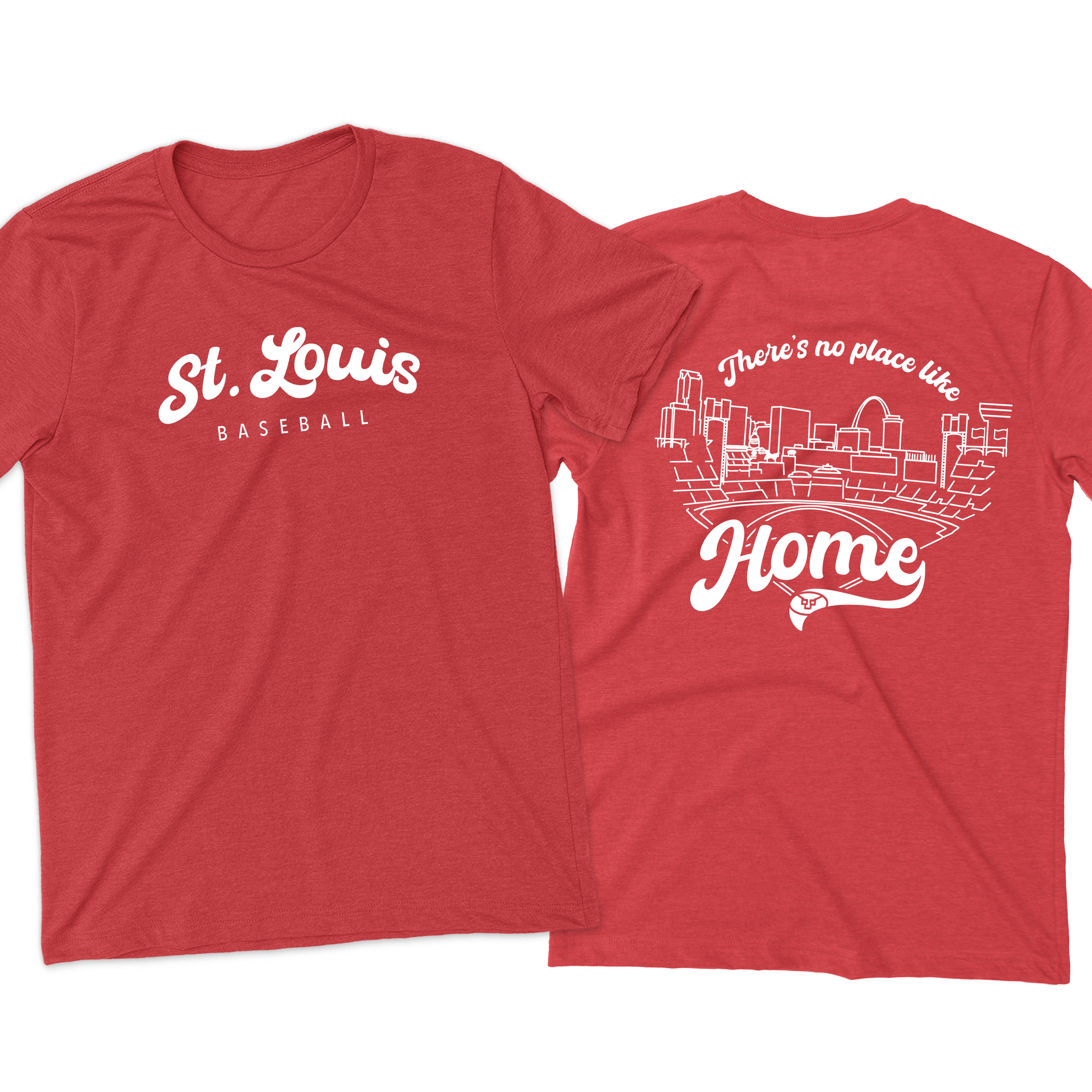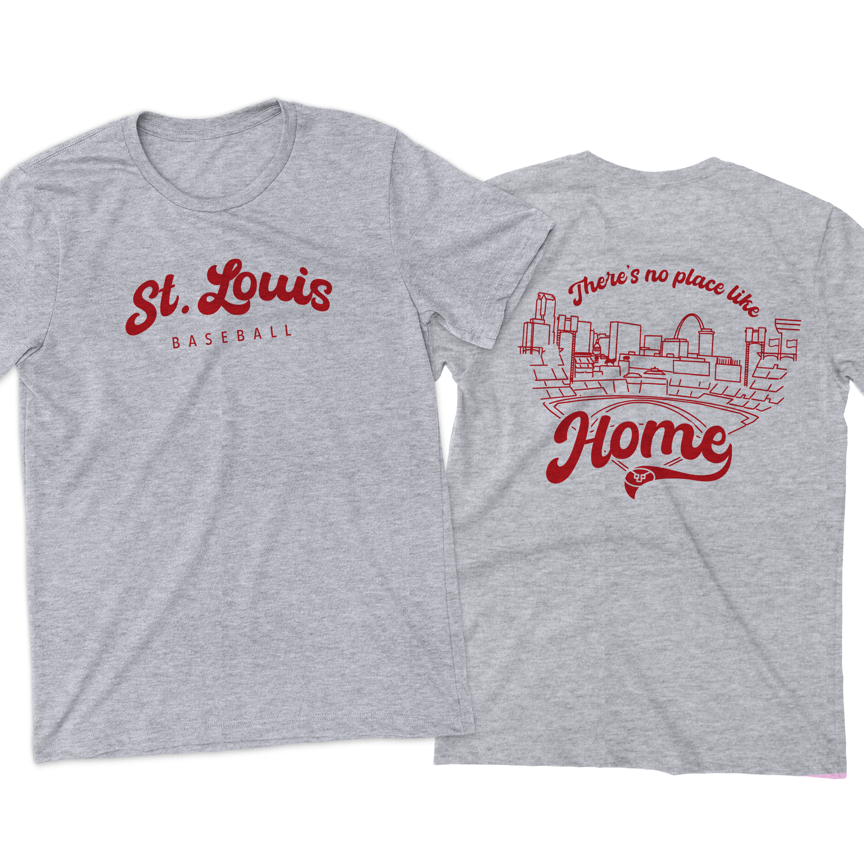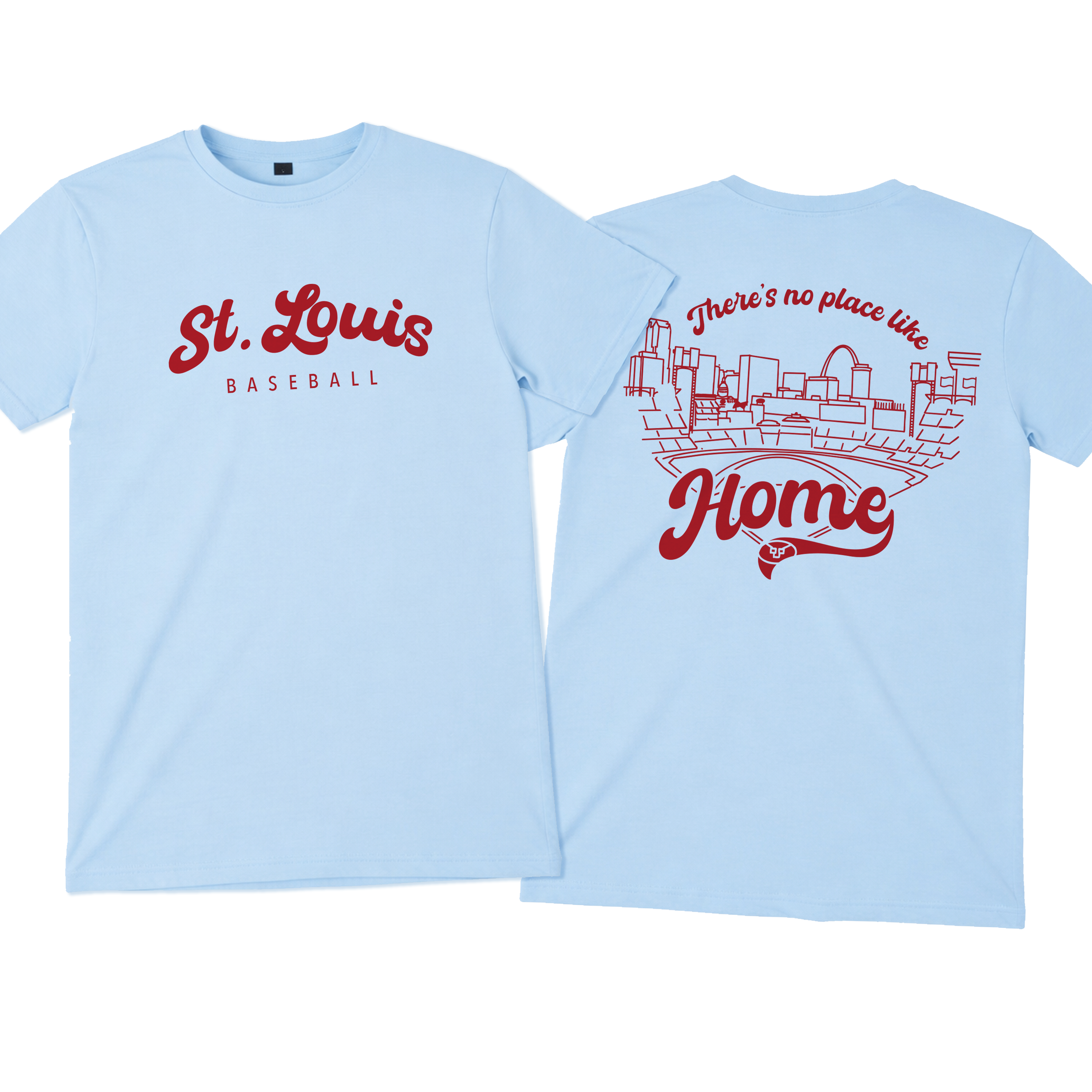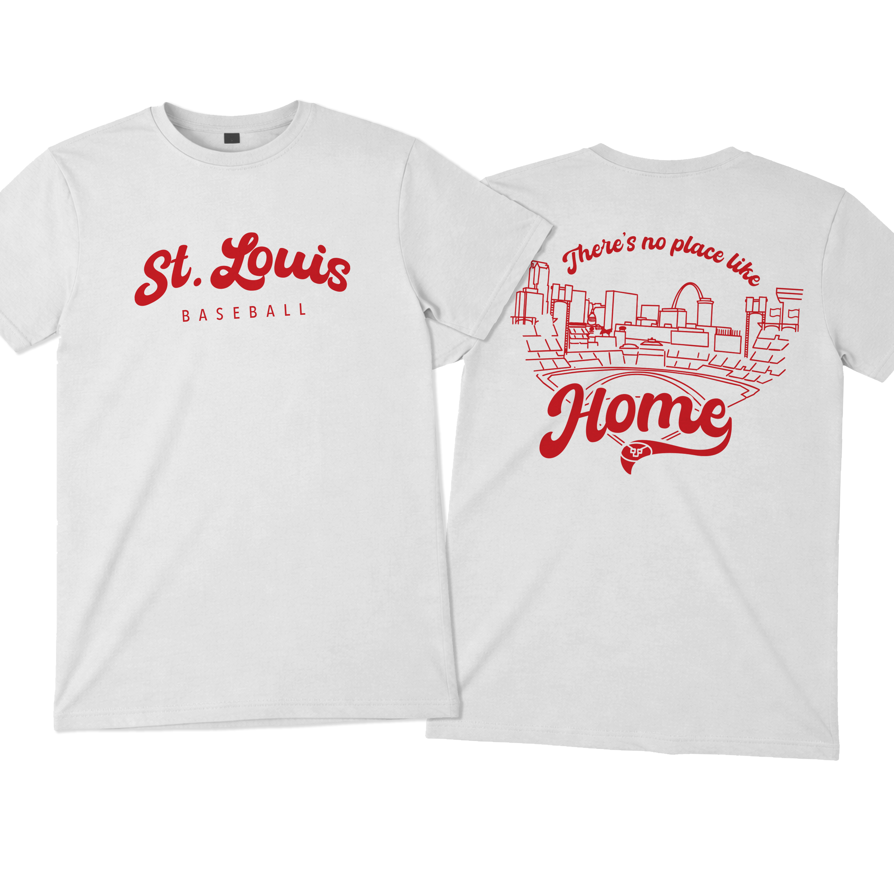 Featuring a clean, classic front with “St. Louis Baseball” and a bold, statement back design showcasing the city skyline and ballpark with “There’s no place like Home”, this piece is made for true STL fans who live for that first pitch energy.