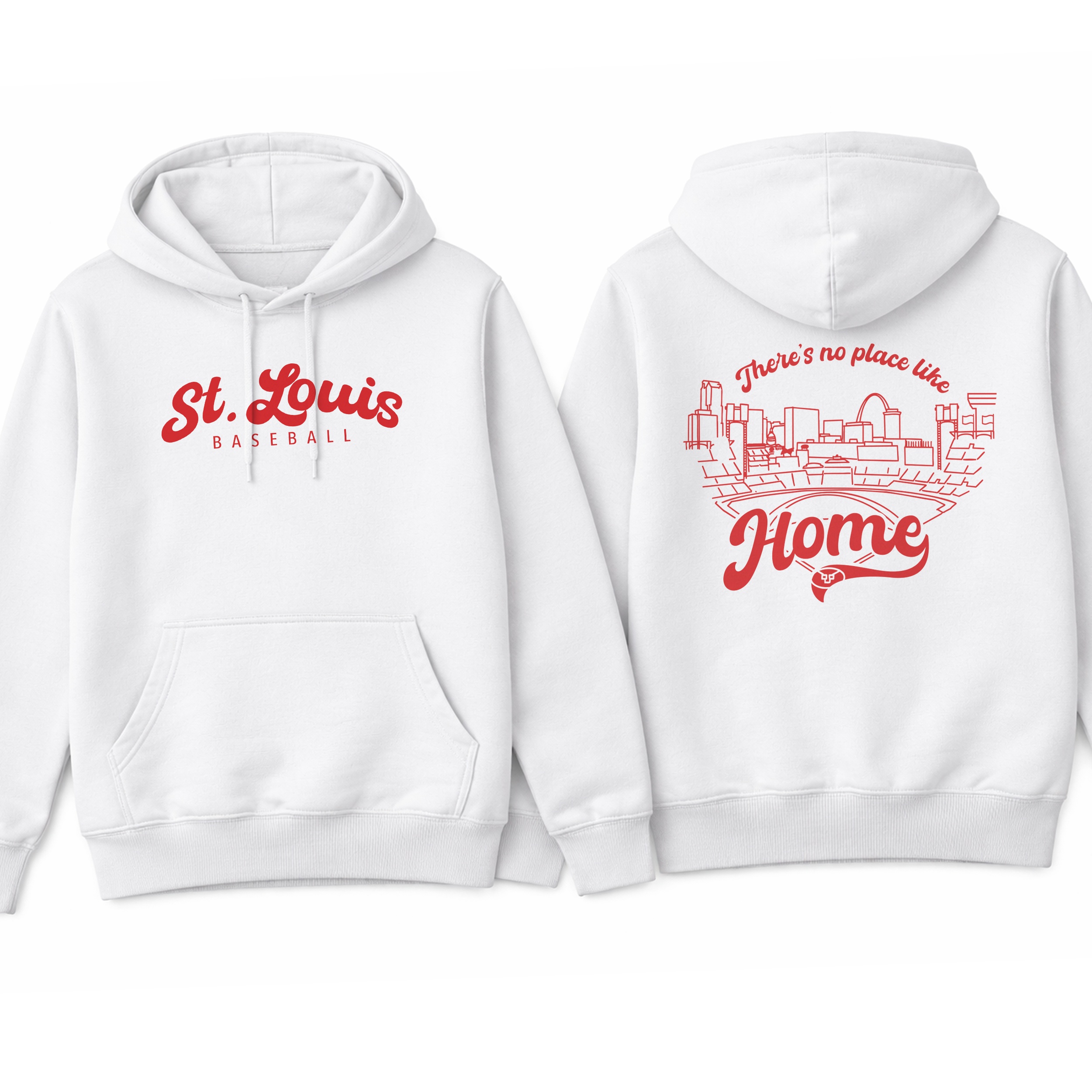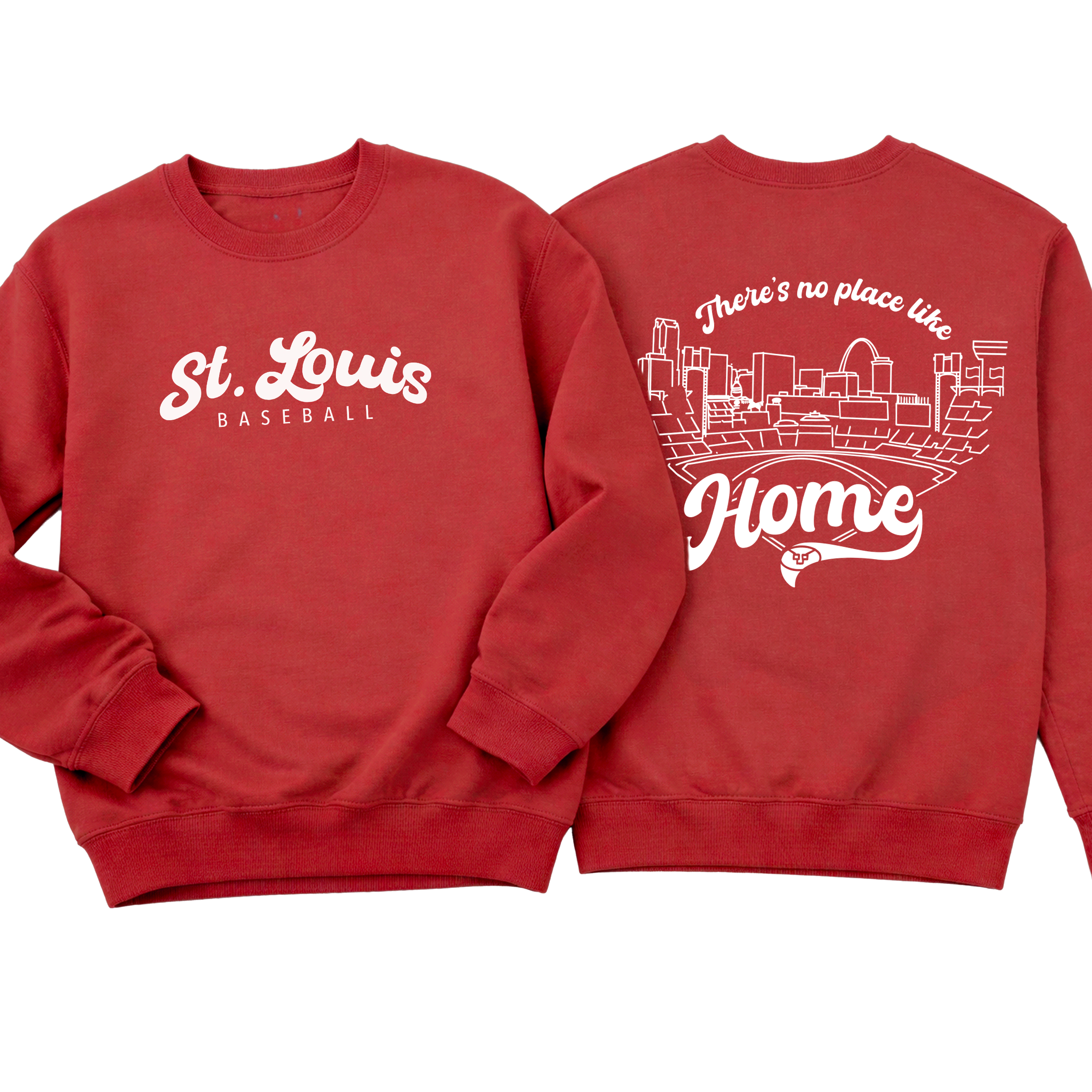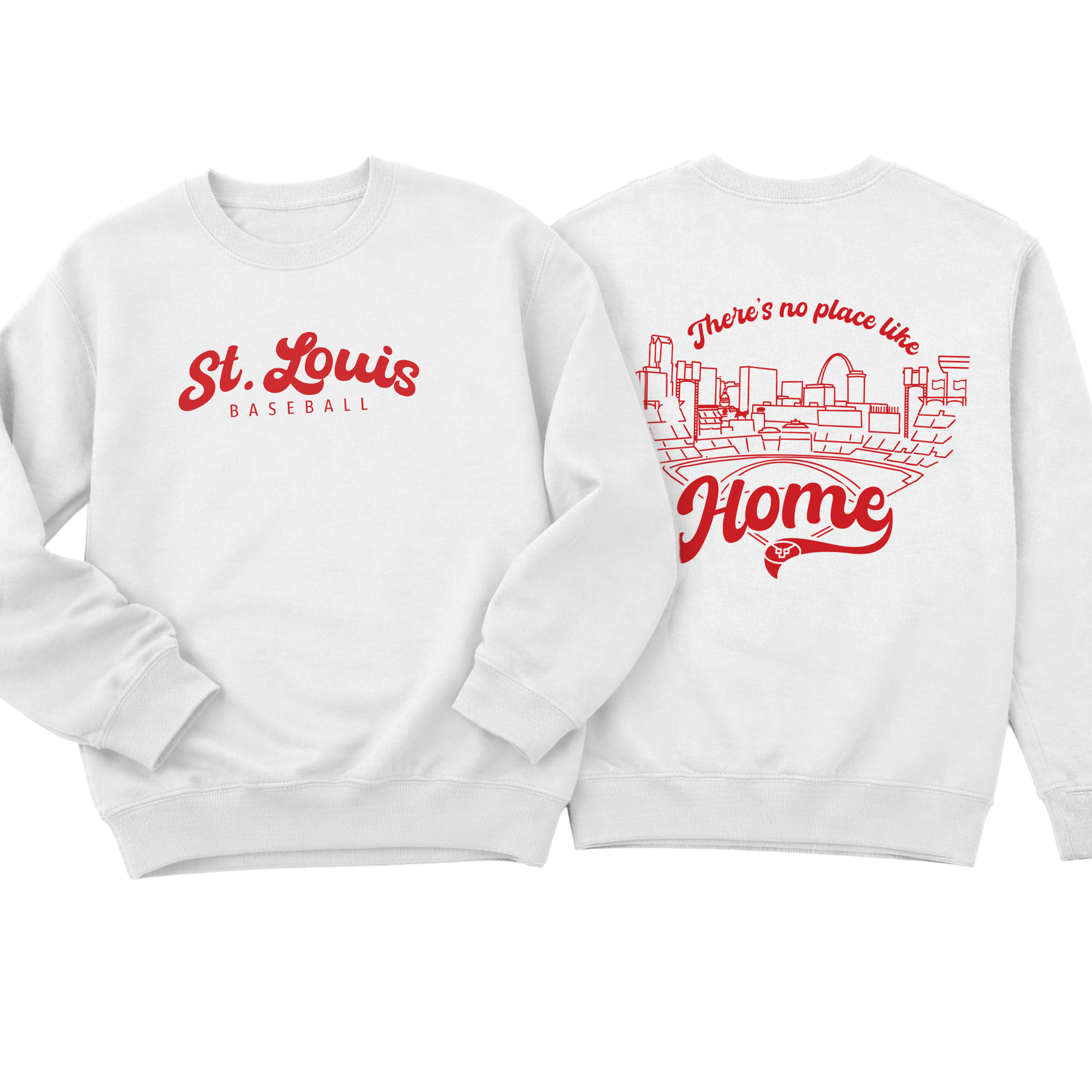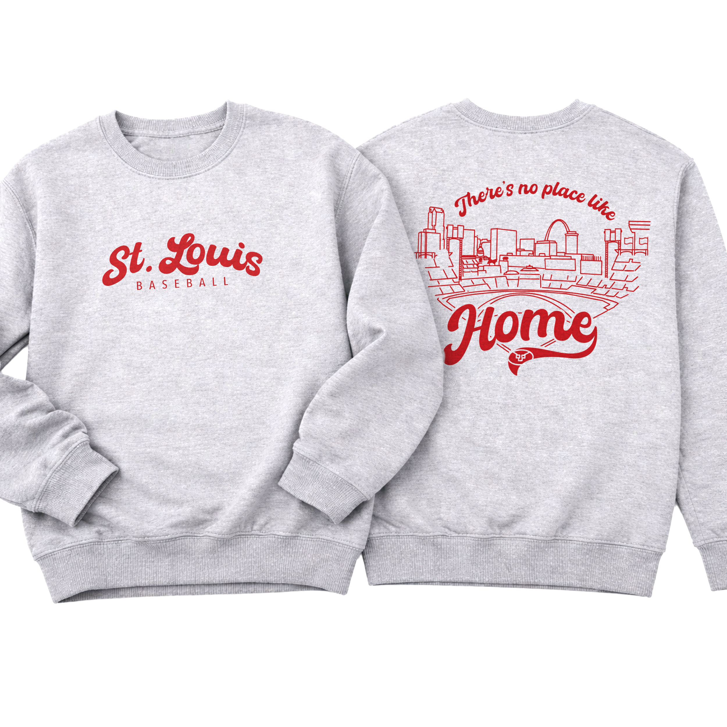 Featuring a clean, classic front with “St. Louis Baseball” and a bold, statement back design showcasing the city skyline and ballpark with “There’s no place like Home”, this piece is made for true STL fans who live for that first pitch energy.